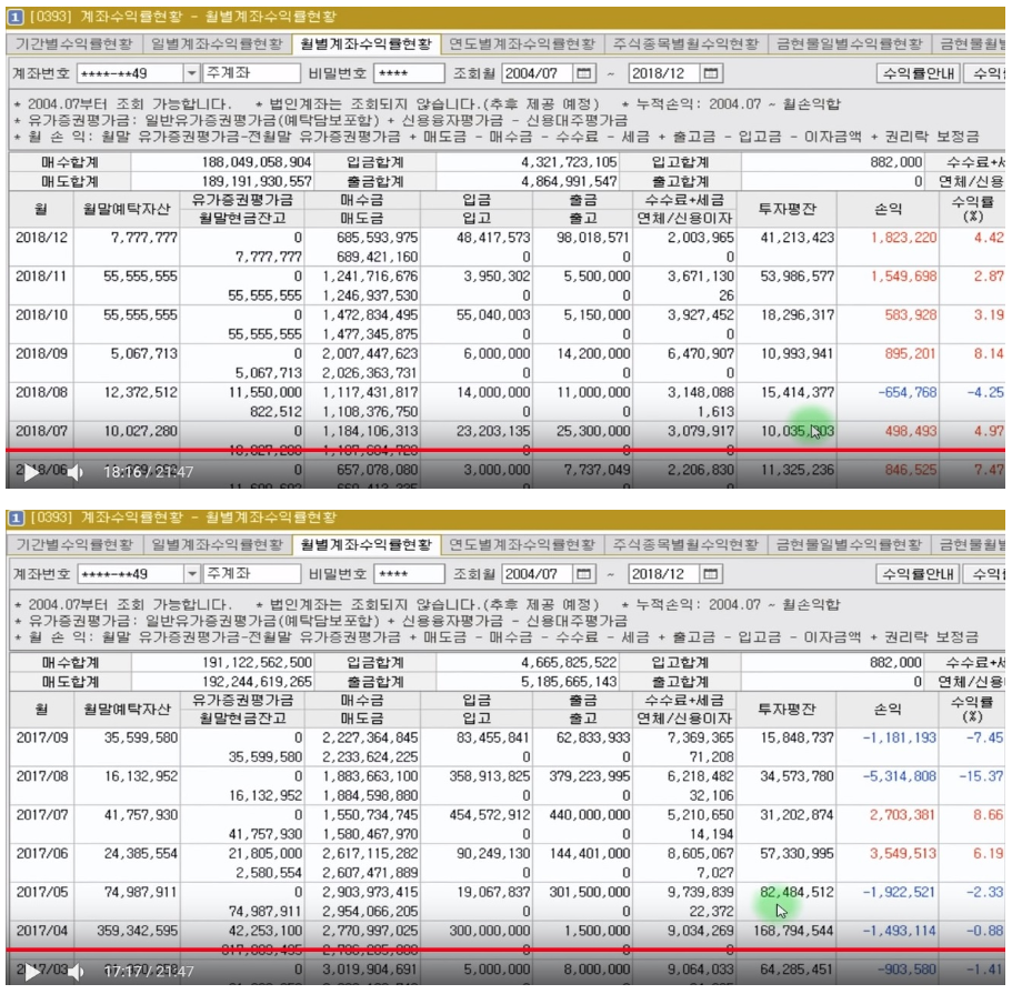 창원개미TV는 월별손익현황을 영상을 공개했는데 2016년 이후에는 월별손익이 일반 회사원 월급만도 못하다.