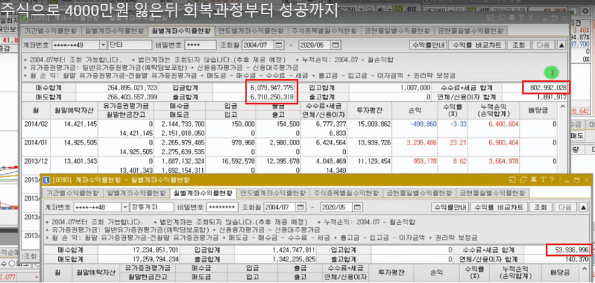 영상인증에 나오는 HTS화면을 살펴보면 매수합계와 매도합계는 각각 다음과 같다.