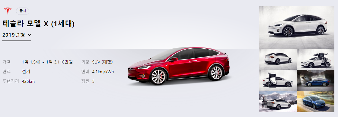 바로 테슬라의 SUV모델 X1차량이다. 가격은 1억 4천만원대로 주행거리는 약 425km이상 가능하다.