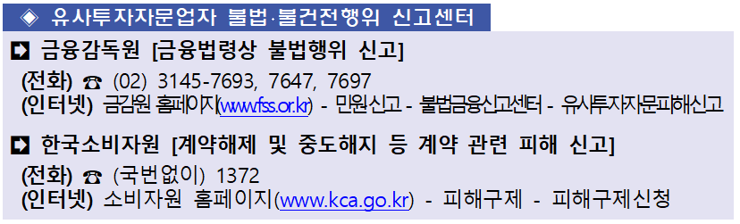 금융감독원은 피해신고 및 그에 대한 포상도 하고 있으니 적극적으로 이용 바랍니다.