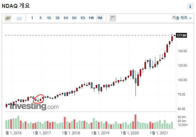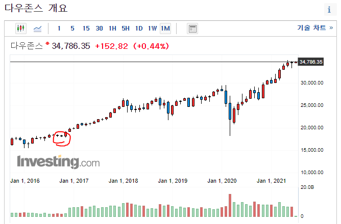 - 다우지수와 나스닥지수는 2016년 11월 이후 단 한번도 저점을 깨고 내려온 적이 없음...