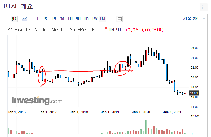 - BTAL은 단기하락후 2019년부터 수익권... 그러나 최근에 다시 급락