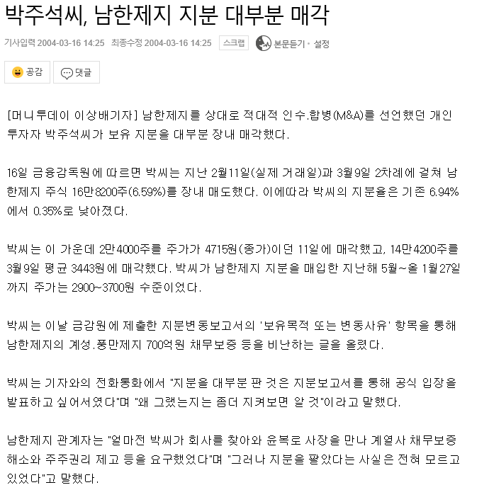 - "지분변동 보고서를 통해 본인의 의도와 남한제지 경영진의 행태를 개인투자자들에게 알리고 시어 일부러 지분을 매각한뒤 재매입한 것"이라고 설명