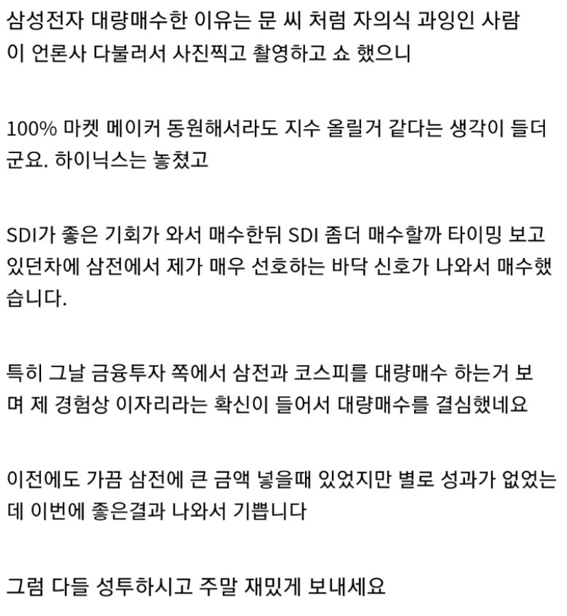 Q. 금융투자 대량 매수로 확신을 가진 이유